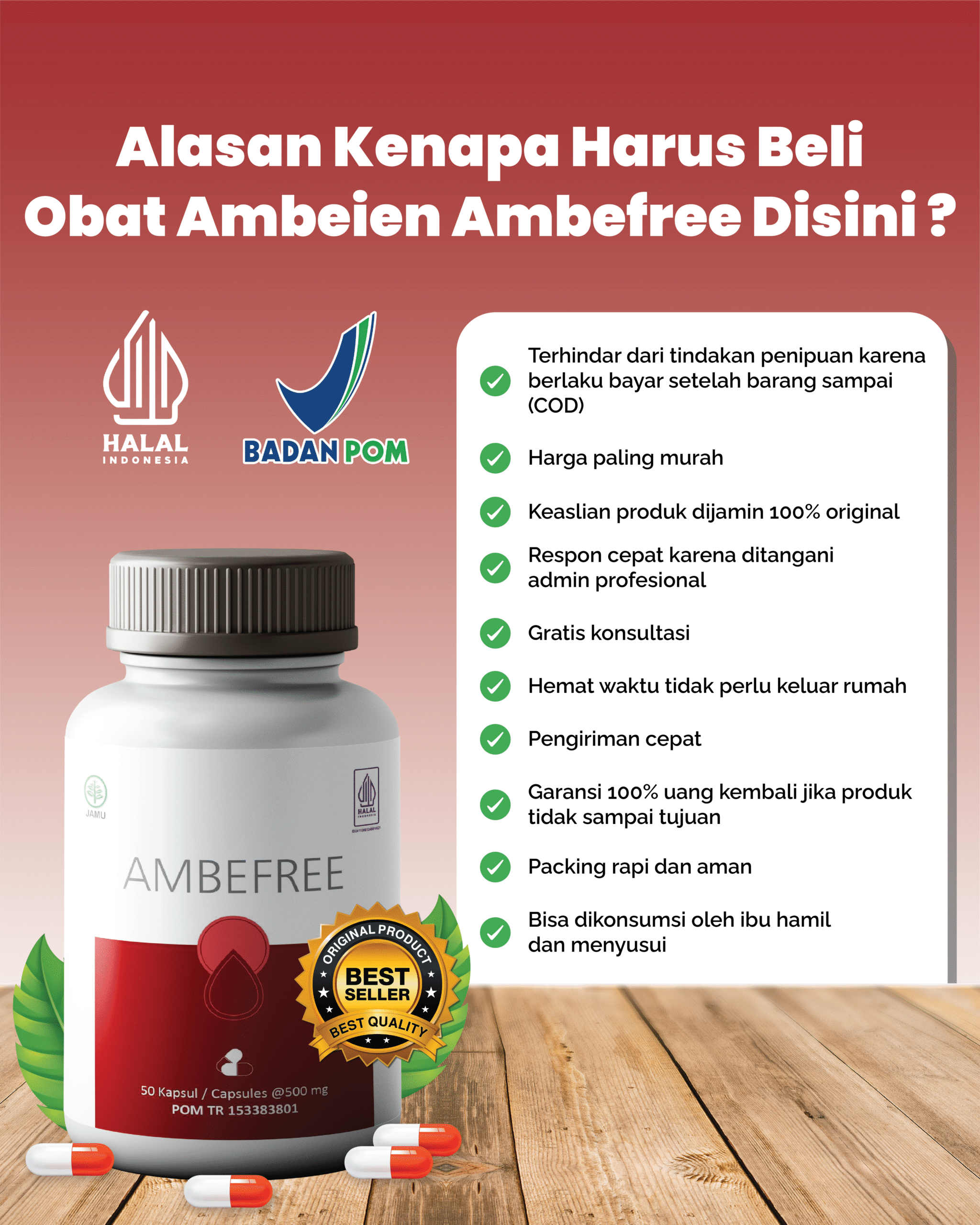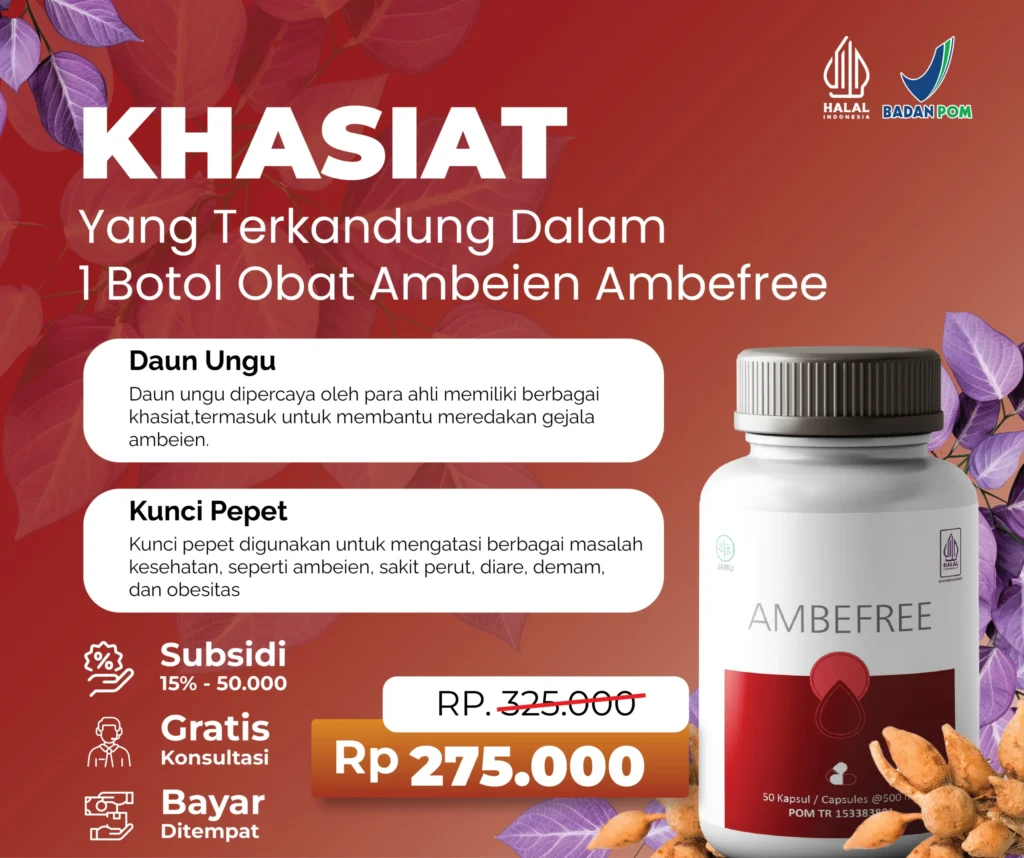 Obat Ambeien Ambefree merupakan Obat Ambeien Alami  pertama yang terbuat dari bahan herbal tradisional. Obat Ambeien Ambefree efektif untuk menyembuhkan Sakit Benjolan Ambeien dan BAB Berdarah Karena Ambeien karena dibuat dengan bahan berkualitas dan Formula Obat yang 13x lebih ampuh untuk sembuhkan Ambeien. Dalam 3 Hari Sembuhkan Ambeien Anda Dengan Obat Ambeien Ambefree. Garansi Uang Kembali 100%