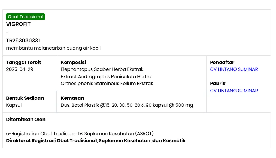 Ya Obat Infeksi Saluran Kemih Ampuh Vigrofit Sudah Terstandarisasi BPOM dan Aman dan Halal Di Konsumsi